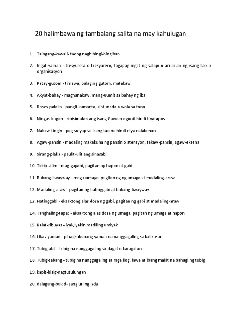 Tambalang Salita Na May Kahulugan Pdf