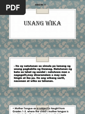 Unang Wika At Pangalawang Wika Pdf