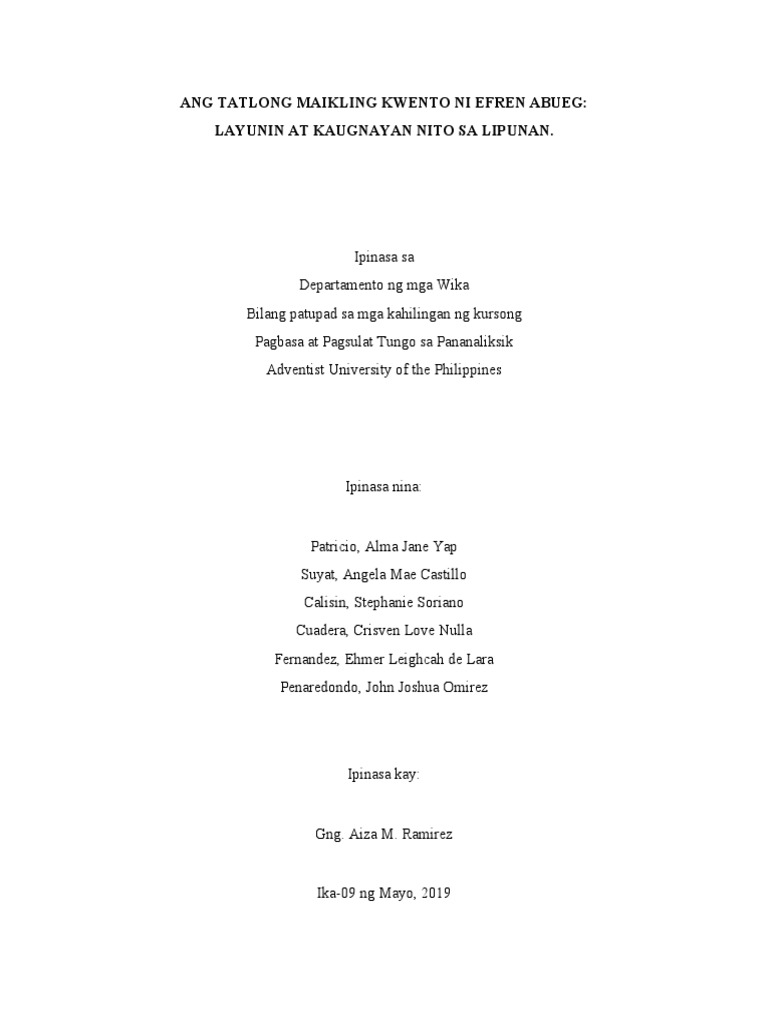 Pananaliksik Tungkol Sa Tatlong Maikling Kwento Ni Efren Abueg 1 Pdf