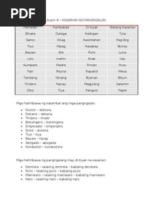 Aralin 8 Kasarian Ng Pangngalan Pdf