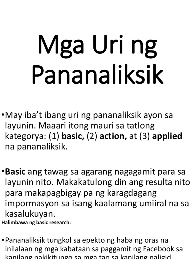 Mga Uri Ng Pananaliksik Filipino11