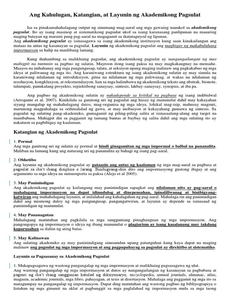 Akademikong Sulatin 3 Pagsulat ng akademikong sulatin tulad ng. Makatutulong ito sa pagpapataas ng kaalaman sa ibat ibang larangan.