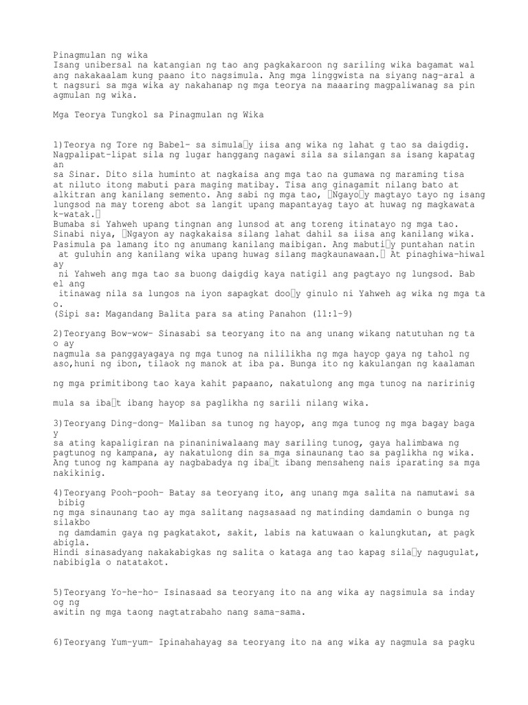 Mga Teorya Ng Pinagmulan Ng Wika Pdf