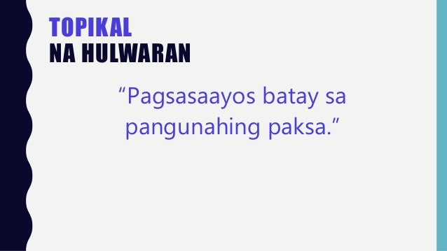 Iba't ibang uri ng hulwaran. Subukin mong bumuo ng iba pang hulwaran sa palakumpasang. Ibat ibang uri ng hulwaran sa akademikong pagsulat. Ang nasa Hanay A ay paglalarawan ng ibat ibang uri ng akademikong sulatin sa Hanay B.
